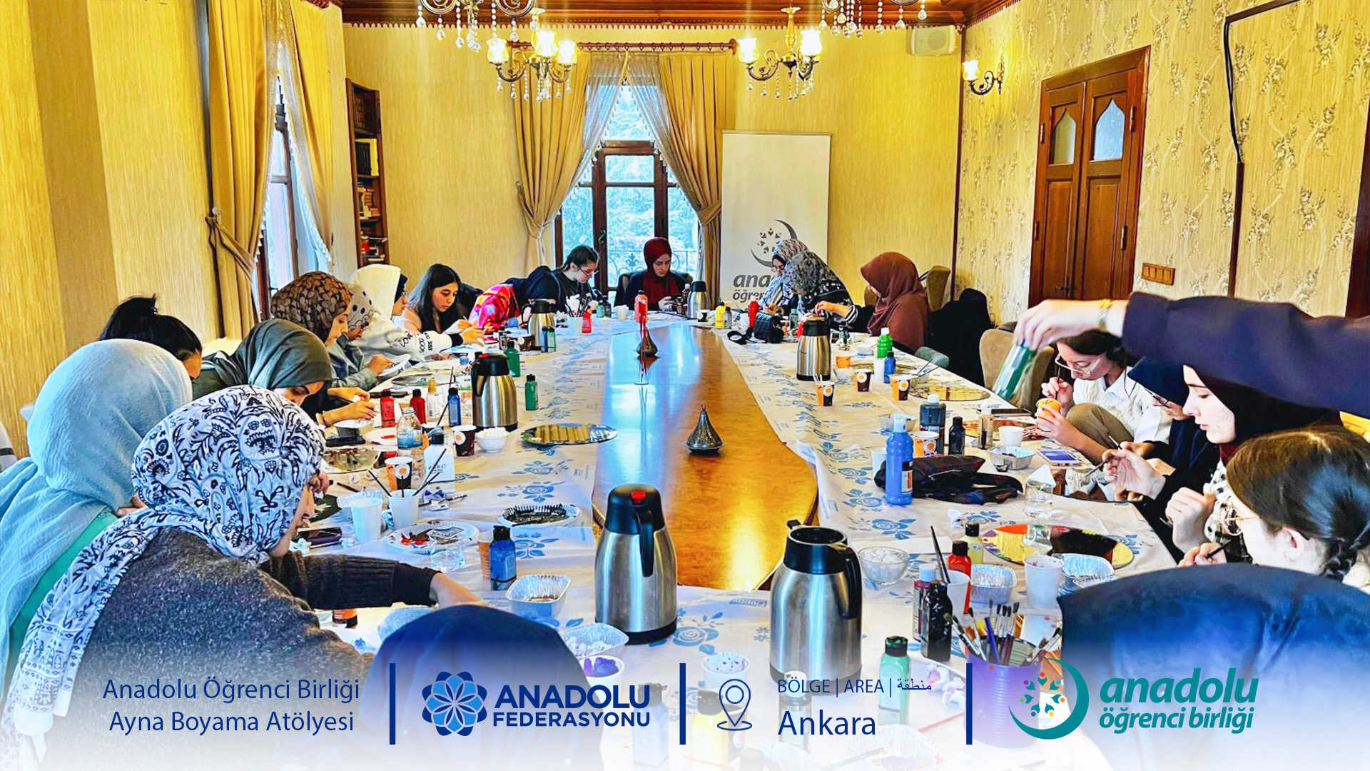 Anadolu Öğrenci Birliği Ankara Temsilciliği 24 Aralık Çarşamba günü Anadolu Federasyonu Ankara Ofisi'nde Ayna Boyama Atölyesi düzenledi. Sanatın bir ifade ve üretim alanı olarak merkeze alındığı etkinlikte kendi aynalarını tasarlayan katılımcılar, yaratıcılıklarını ortaya çıkarma imkanı buldu.